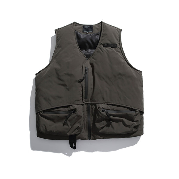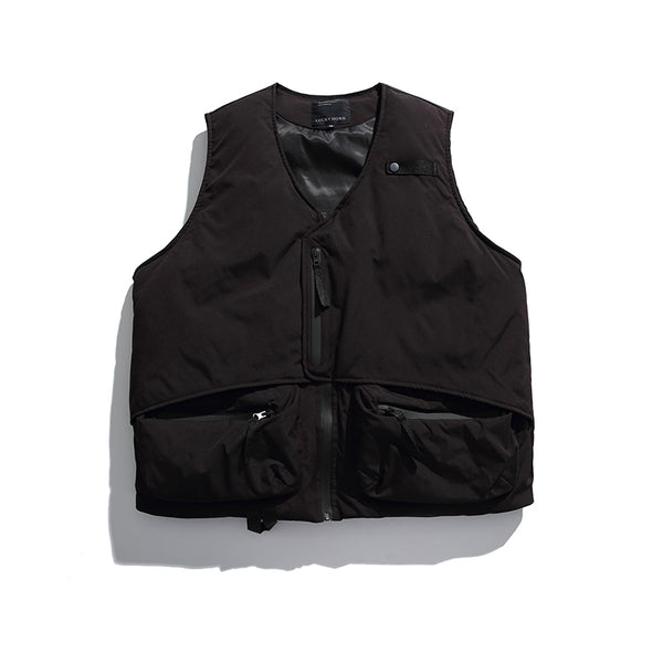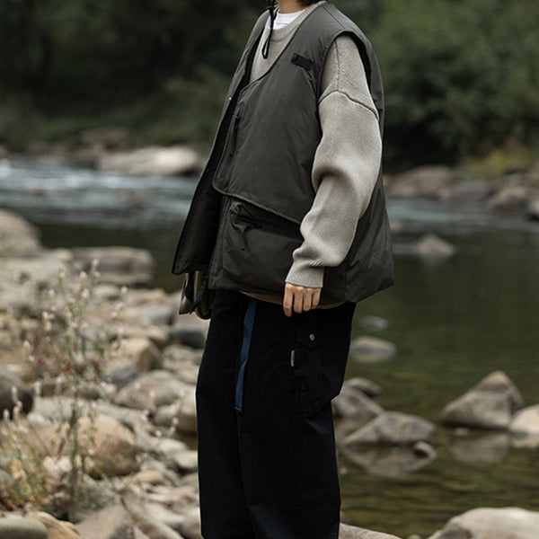 The innovative V-Neck Tape Tightening & Zipper Puffer Vest is designed with comfort and style in mind. Boasting tape tightening and two front pockets with big storage, this vest will keep you warm and help you stay organized. Its zip-up closure ensures a secure fit.