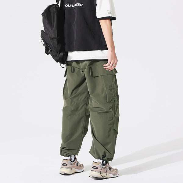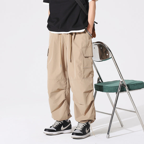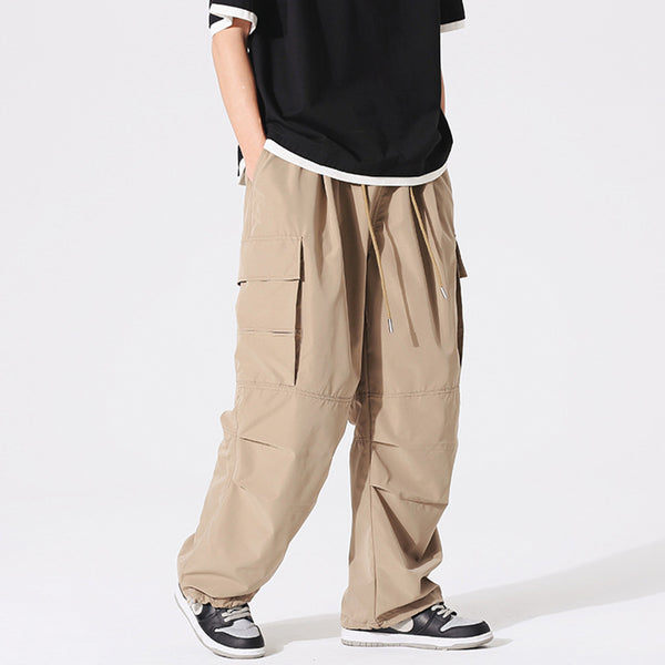 PLEATED KNEES LOOSE STRAIGHT TROUSERS