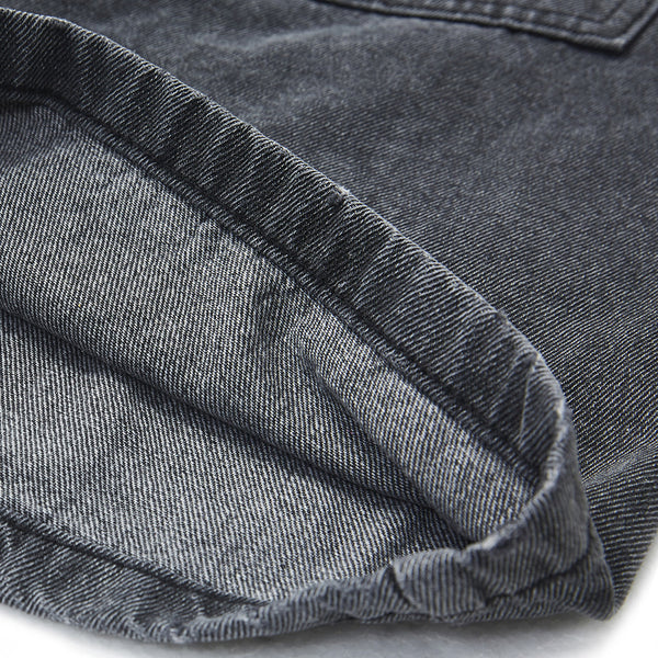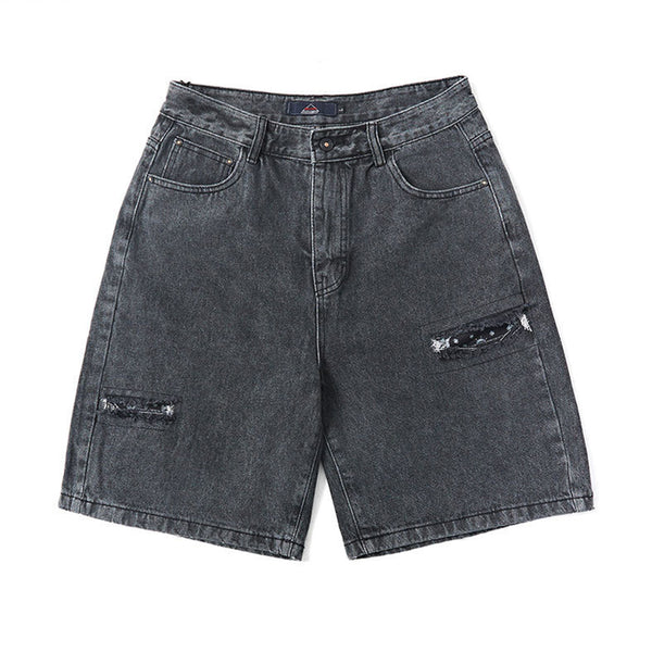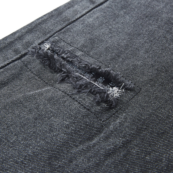 SHREDDED WASHED DENIM KNEE SHORTS DARK GREY JEAN PANTS
