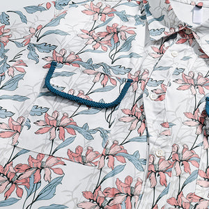 The retro floral print, half sleeves, and dropped shoulders give a visually warm and friendly feeling, while the 100% cotton fabric makes it comfortable to wear.