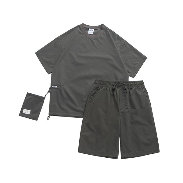 QUICK-DRYING THIN MOUNTAIN SHORT-SLEEVE SHIRT AND SHORTS SET WITH SMALL BAG