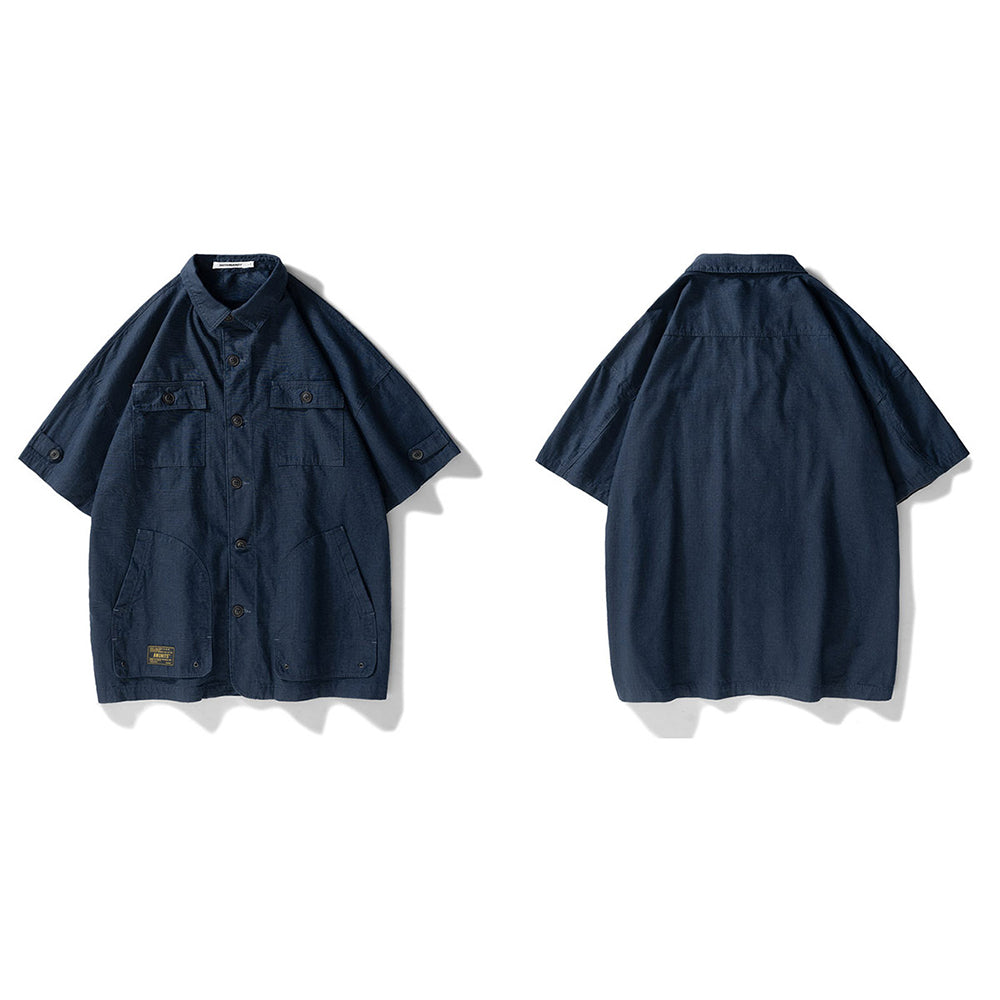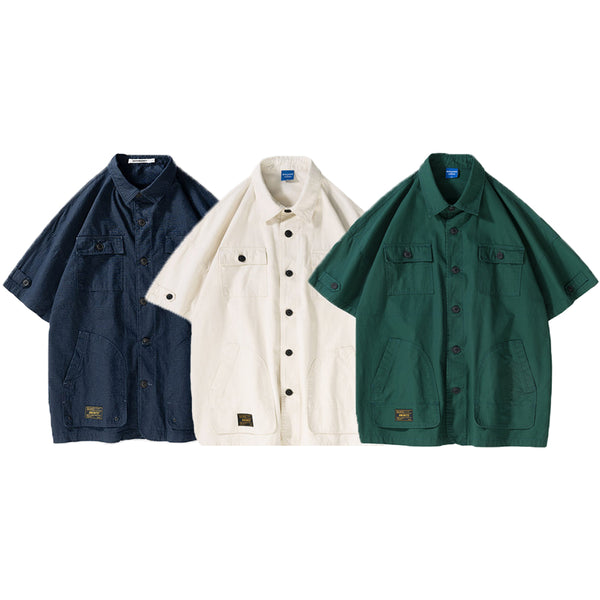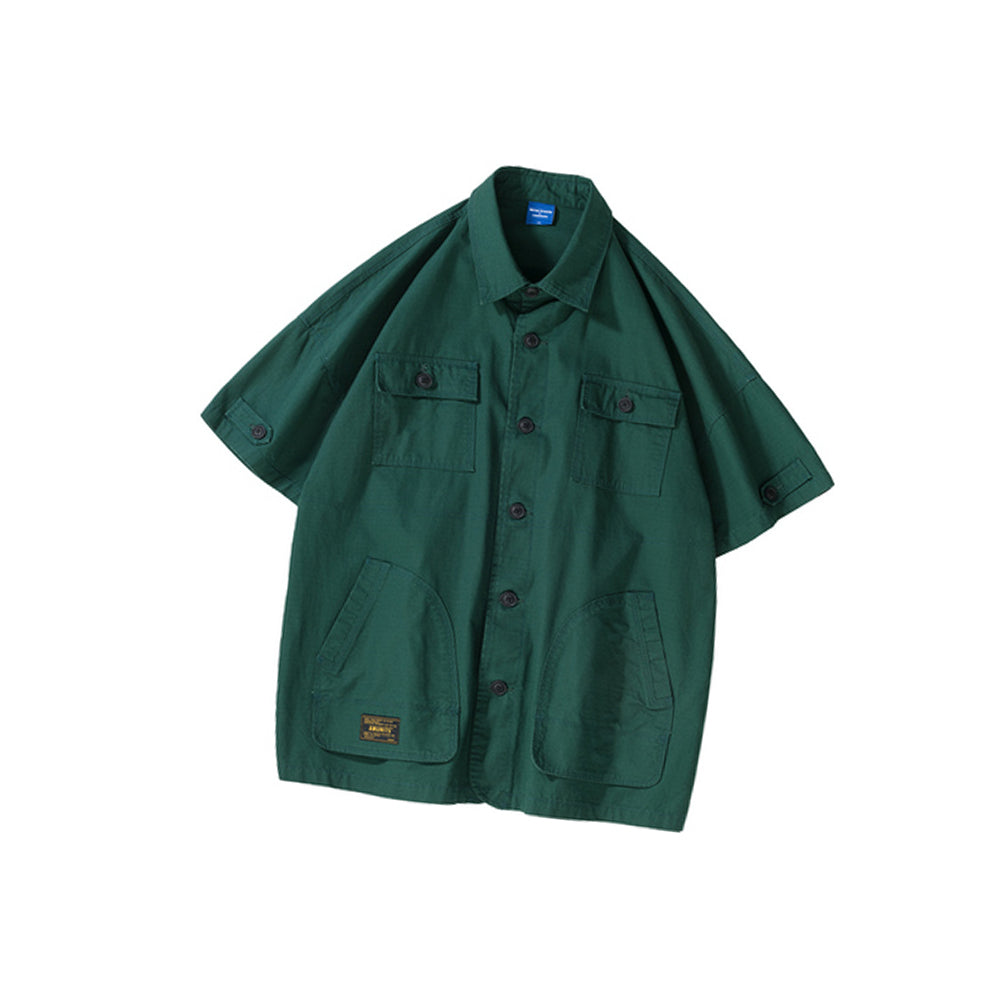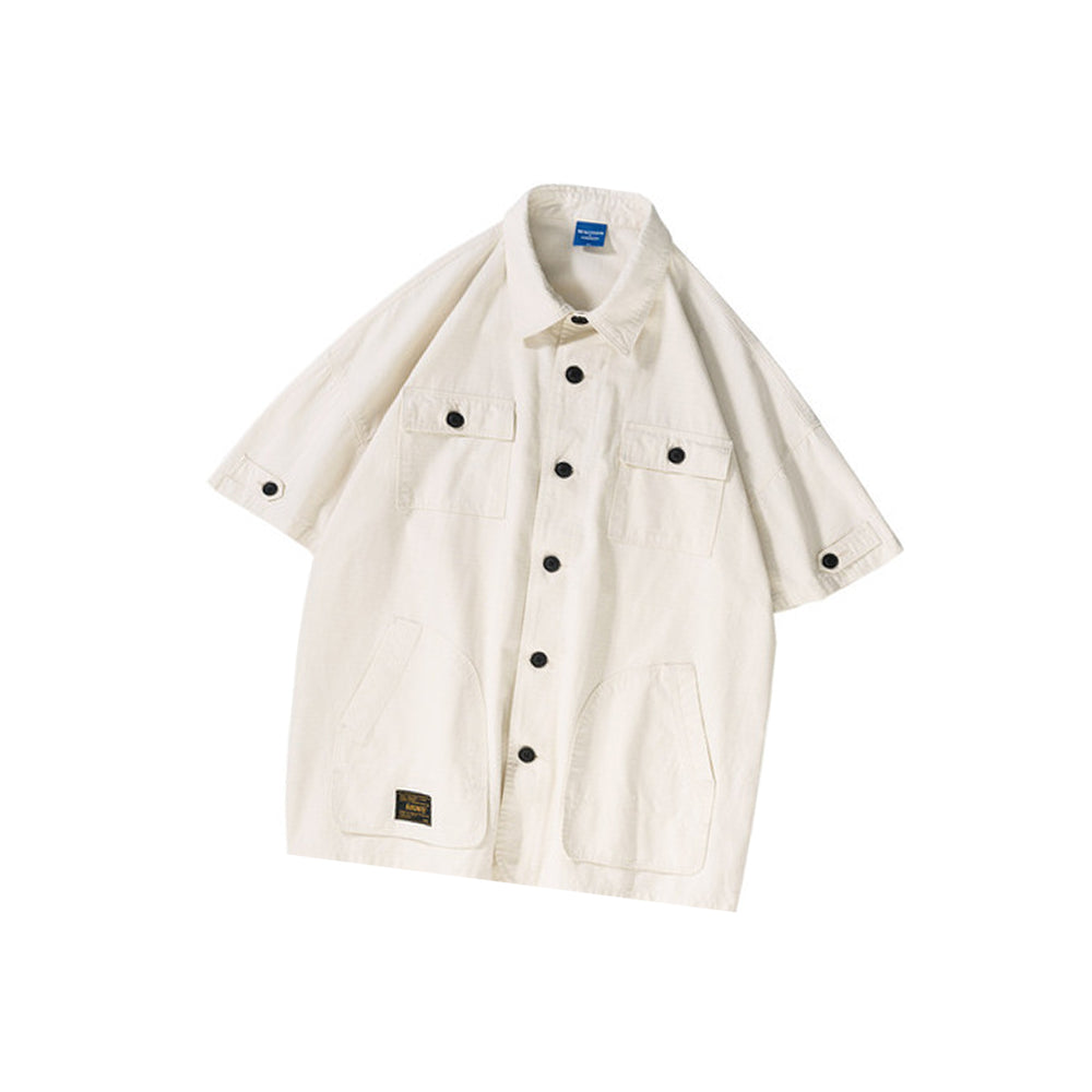 BUTTONED OUTER SHORT-SLEEVED MULTI-POCKET LOOSE SHAPE SHIRT
